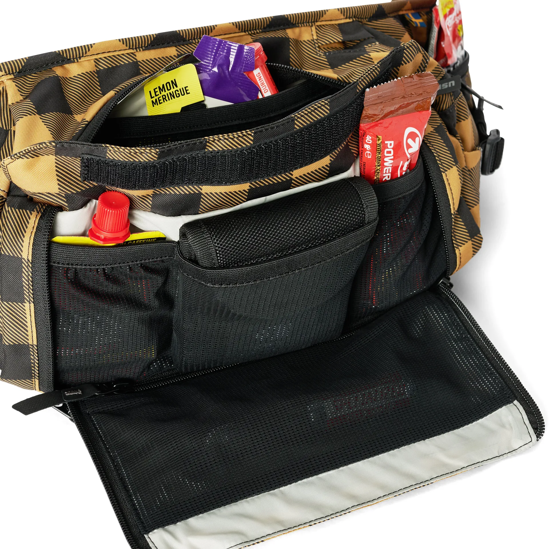 Designed as a the Lumberjacks best bud, carrying 6L liters of storage capacity, equipped with a big main compartment, a multi organizerpocket and two pockets for quick access to energy gels and food. It also comes with an easy and secure attachment for bike LED-light.
