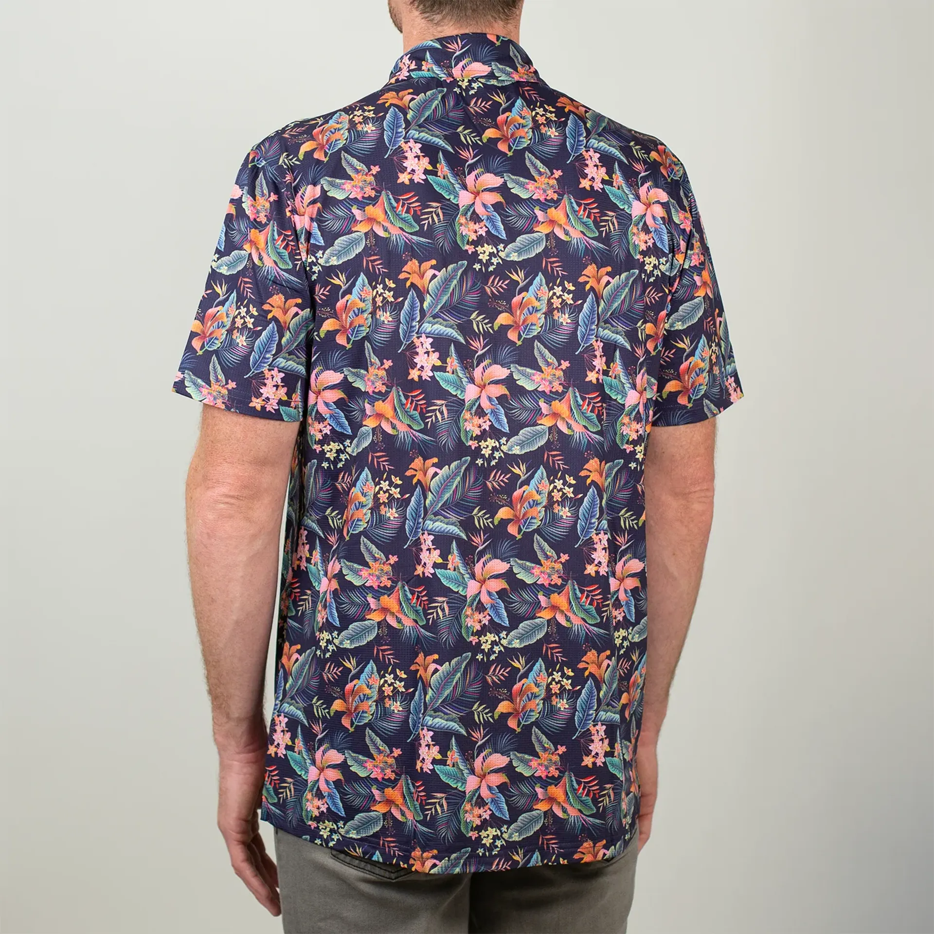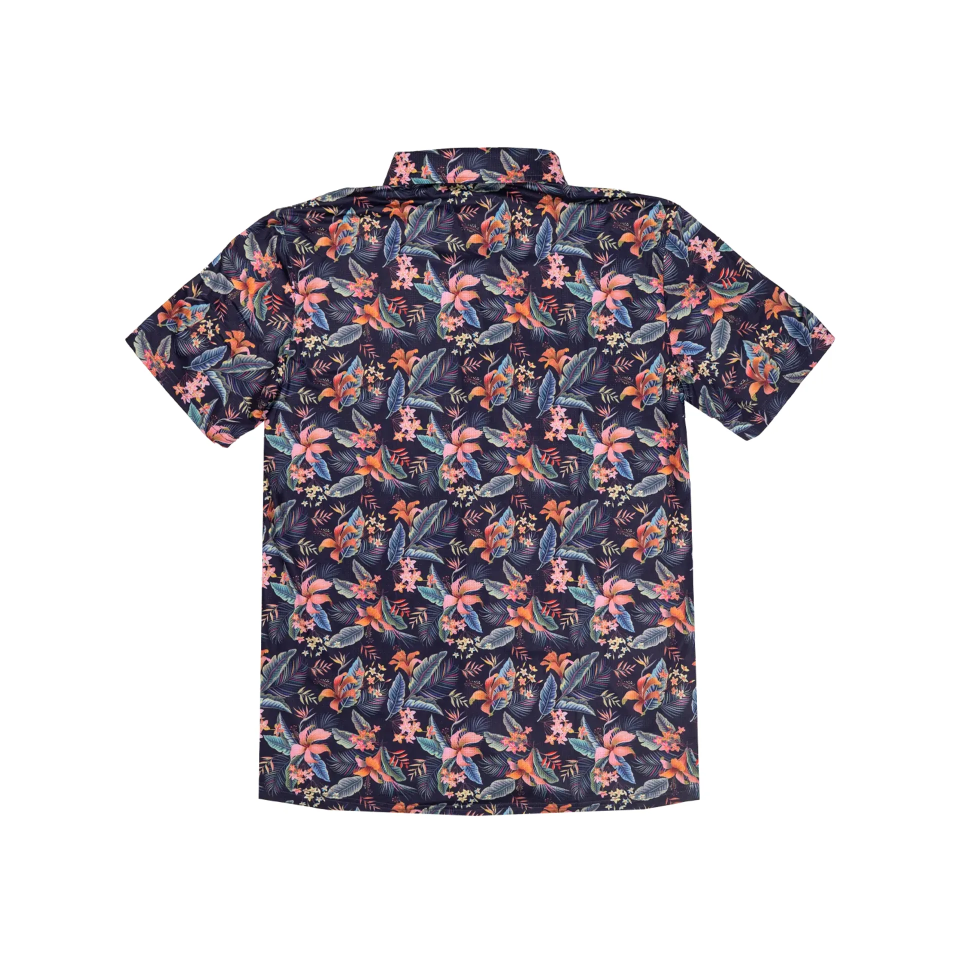 This button up brings island vibes to after-hours singletrack with a lush floral pattern set against a deep, midnight backdrop.