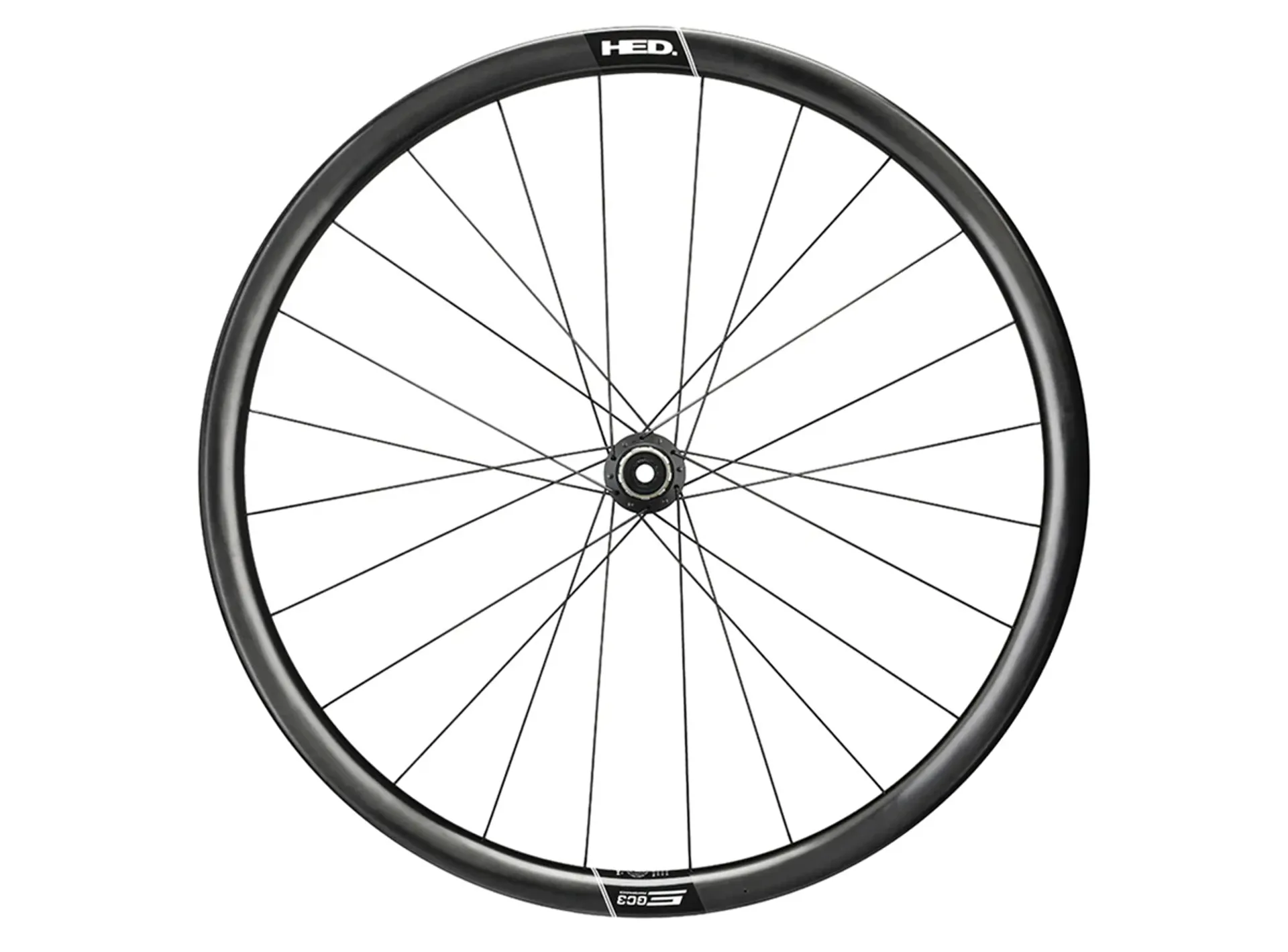 The Performance line ensures quality without compromising integrity. Emporia GC3 Performance Carbon wheels are sold individually, front and rear. This is the rear wheel, an 845 gram construction that draws on HED's deep carbon experience and handmade carbon lay-up expertise to create the 405 gram Emporia GC3 Performance Carbon Disc rim, giving it great strength, resiliency and ride quality. HED's engineers achieve this with precise placement lay-up150 GSM carbon (versus 110 GSM in the Pro) and creating an ideal structure to carry high and balanced spoke tension, which should reduce the need for frequent tension and truing despite attacking harsh gravel surfaces. The 30mm profile, disc-only tubeless ready rim features 26mm internal, 31mm external rim widths; with a hooked structure that allows you to run tubeless or clincher tires.
