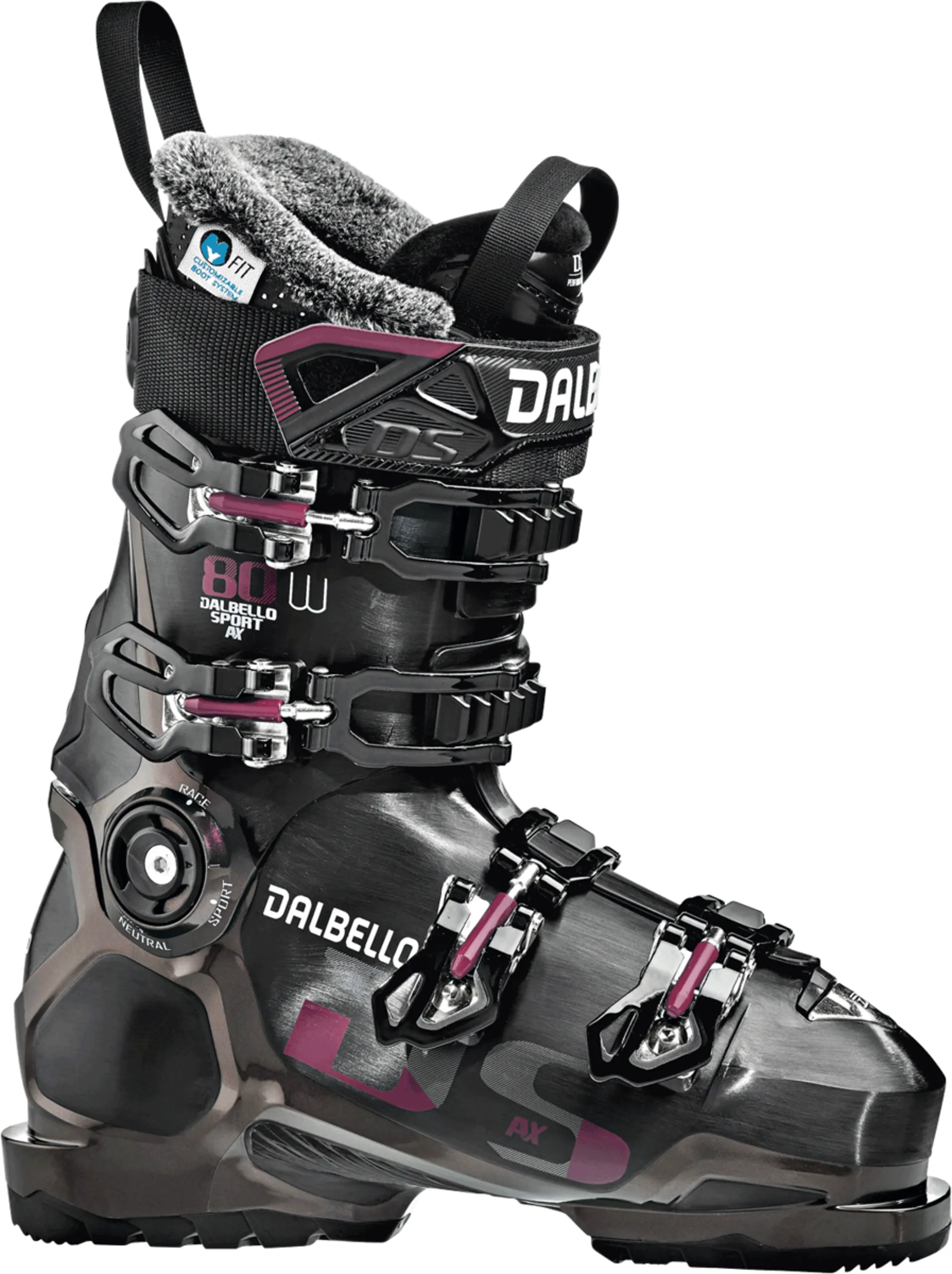 The DS AX 80 W is for intermediate to advanced women skiers who prefer the support of a 4-buckle overlap boot and the comfort of a wider-fit, 101mm last. Powerful and precise with exceptional comfort and foothold, Dalbello´s unique "Fit for Women" concept features the latest POWERCAGE construction for better and longer skiing days without fatigue. Thanks to Dalbello´s MyFit technology, both the thermo-formable Instant Fit liner and the shell can be exactly customized. The GripWalk option allows the exchange of heel and toe sole for relaxed walking comfort and more grip. (GripWalk soles sold separately)